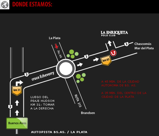 RUTA 2 KM 65 - LA PLATA - BUENOS AIRES - ARG. TEL (011) 4201 6363 / 2578 de 13 a 20 hs. CEL (011) 155 184 6919 NEXTEL 157*1138 info@laenriquetapolo.com.ar